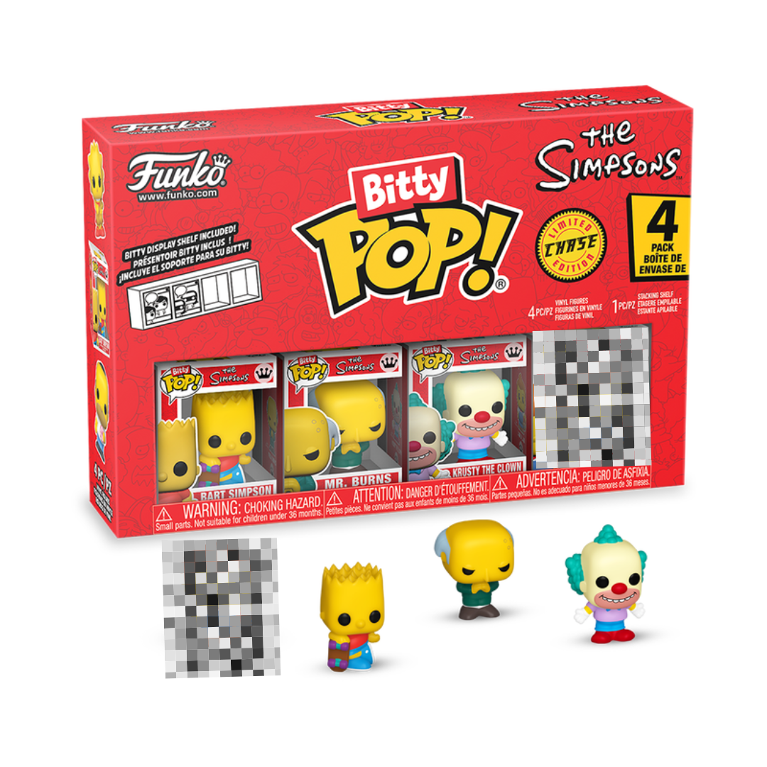 Home Bitty POP! Bitty POP! Television The Simpsons (Bart Simpson) Bitty POP! Television The Simpsons (Bart Simpson) SKU: 85707 15,99 € Desconto de %. IVA incluído. Compre este produto e ganhe 15 Pontos! Saber + O produto encontra-se sem stock. Adicionar à wishlist Bitty POP! Television The Simpsons (Bart Simpson) Este pack inclui 4 Bitty POPs: Bart Simpson, Mr. Burns, Krusty The Clown e um CHASE (ENVIADO ALEATORIAMENTE). Bitty POPs CHASES possíveis: - Hyper Rare (1/6) - Bartman; - Hyper Rare (1/6) - Fallout Boy; - Rare (1/3) - Lard Lad; - Rare (1/3) - Chief Wiggum; Inclui um expositor acrílico para arrumação dos 4 Bitty POPs Os expositores podem posteriormente ser encaixados uns nos outros Tamanho do Bitty POP!: Cerca de 2,3cm Idade: 3+ Marca Funko Partilhar