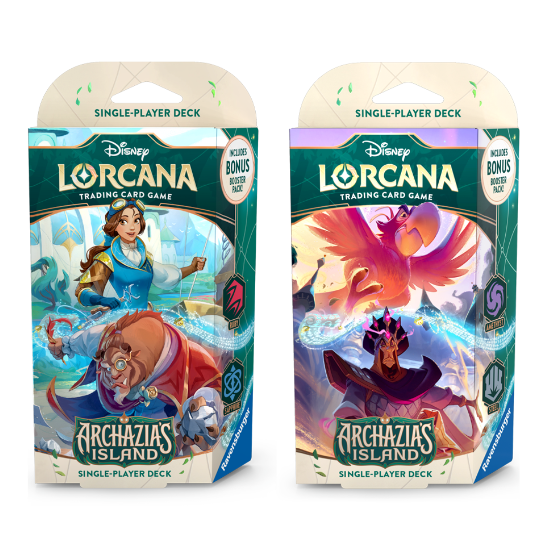 Home Lorcana Disney Lorcana Trading Card Game Starter Deck Archazia’s Island (Em Inglês) Disney Lorcana Trading Card Game Starter Deck Archazia’s Island (Em Inglês) SKU: 110984890 | EAN: 4050368984890 Starter Decks Beast & Belle Iago & Jafar 19,99 € Desconto de %. IVA incluído. Compre este produto e ganhe 19 Pontos! Saber + Comprar Contactar Adicionar à wishlist Disney Lorcana Trading Card Game Starter Deck Archazia’s Island (Em Inglês) Cada Starter Deck inclui: - 1 Starter deck of 60 cards, including 2 foil cards of the characters on the package front; - 11 Damage Counters; - 1 Paper Playmat; - 1 Paper Tracker Token; - 1 Booster pack containing 12 randomized cards; - Regras do jogo. Idioma: Inglês Idade: 8+ Marca Ravensburger Características Partilhar